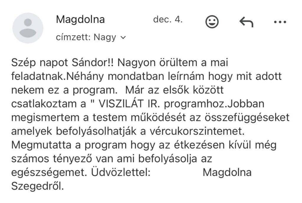 Magyarné Kozma Zita természetgyógyász véleménye a Viszlát IR Programról